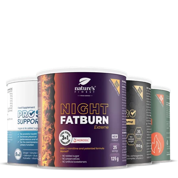 Detox Belly Burn dans ce pack contient une formule brevetée Neopuntia™, qui augmente l’élimination des graisses de 27%⁵, tandis que Night FatBurn Extreme contient de l’extrait de vin rouge, qui aide à contrôler et stabiliser le poids corporel et soutient la perte de poids. L’extrait d’artichaut contribue également à la perte de poids.