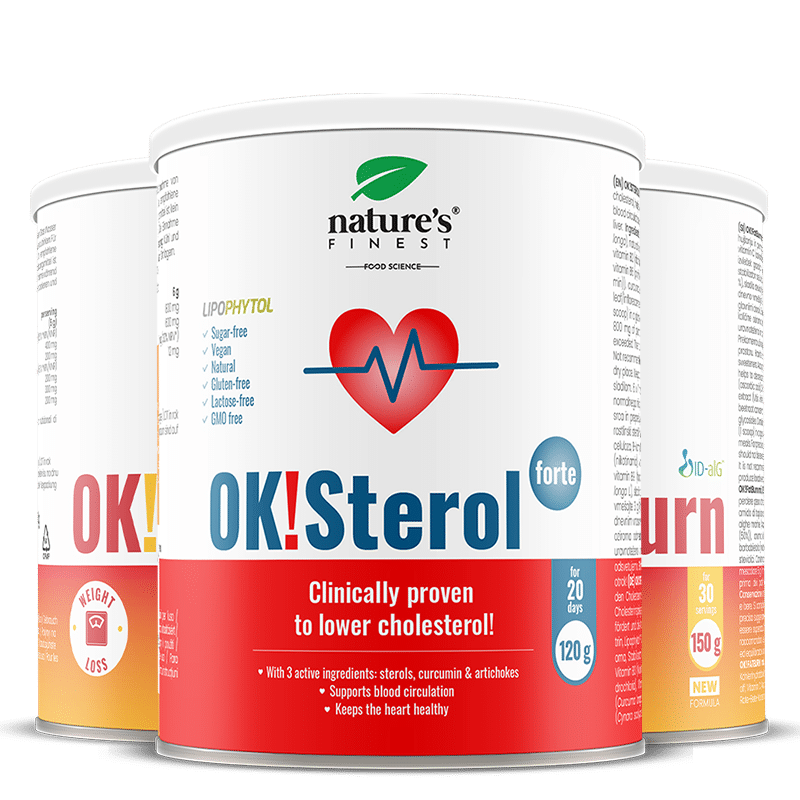 OK!Sterol Forte: Deux fois par jour, mélangez 1 mesurette de préparation (3 g) dans un verre d’eau. L’effet bénéfique est obtenu avec un apport quotidien d’au moins 800 mg de stérols végétaux.