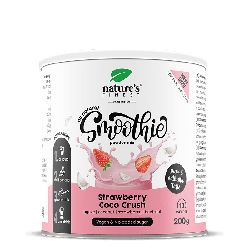 Prenez simplement un verre, remplissez-le d’eau ou de lait végétal, ajoutez votre mélange de smoothie préféré (2 cuillères à soupe) et une demi-banane, mixez dans un blender et savourez !