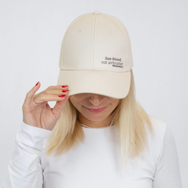 Une casquette marron minimaliste conçue pour un style quotidien sans effort. Ornée de l’inscription « Sun-kissed, not airbrushed » en blanc épuré, elle célèbre la beauté naturelle et l’authenticité.
